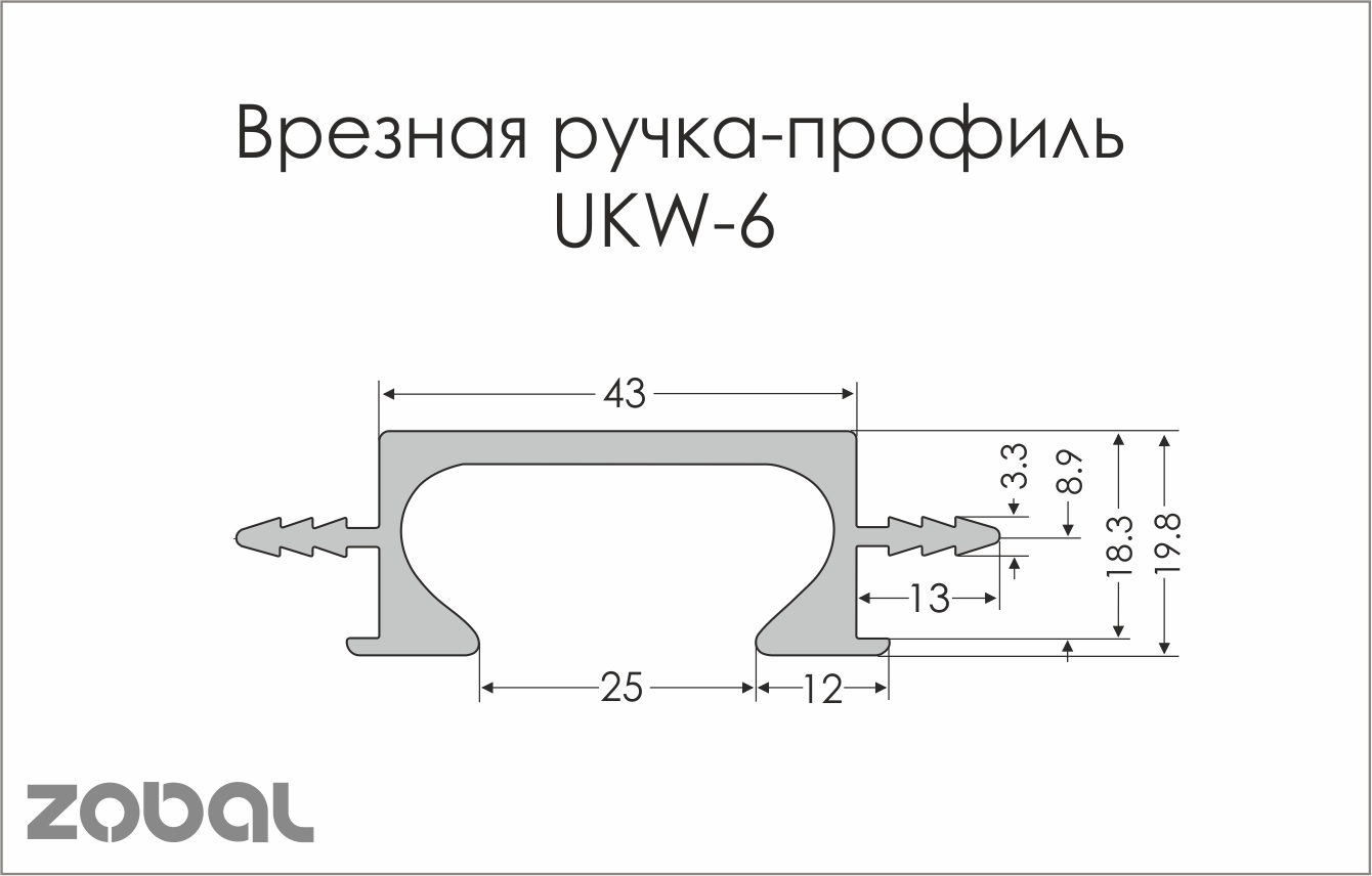 Врезной торцевой алюминиевый профиль ручка UKW 6 Zobal