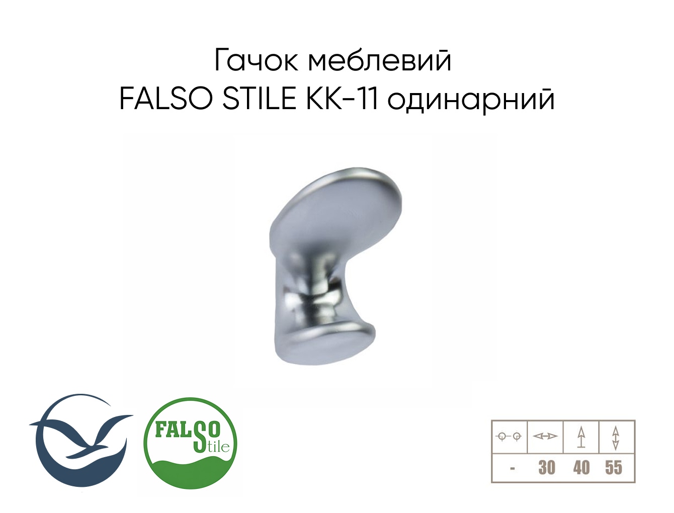 Крючок мебельный Falso Stile КК-11 одинарный хром матовый