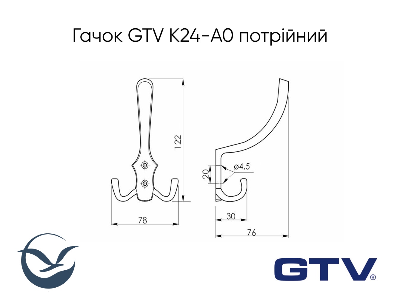 Мебельный крючок GTV К24-А0 тройной, черный матовый