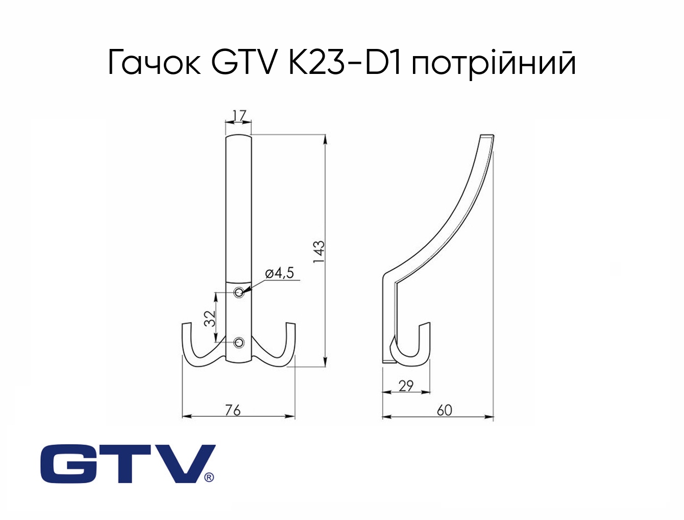 Мебельный крючок GTV К23-D1 тройной, алюминий
