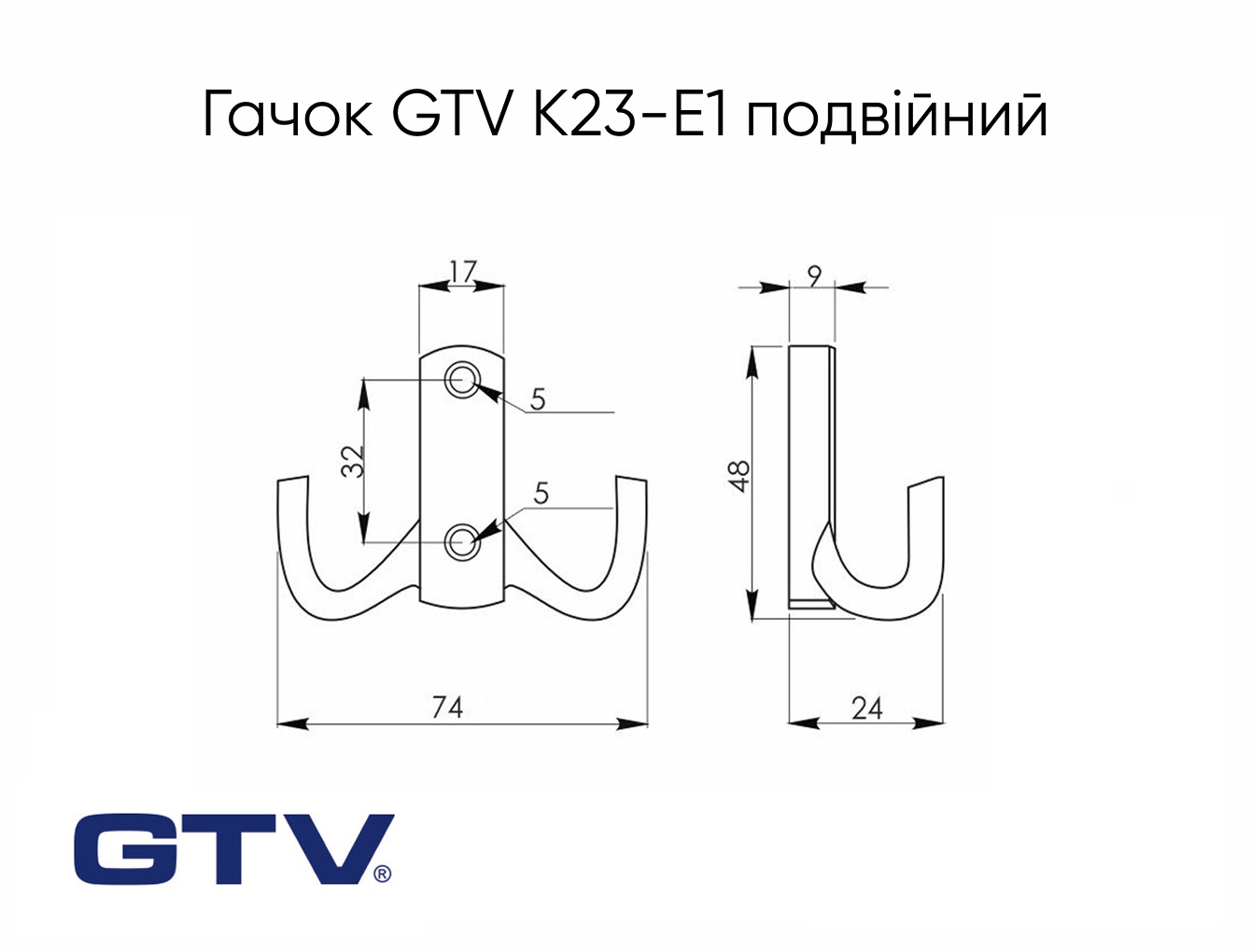 Мебельный крючок GTV К23-E1 двойной, алюминий