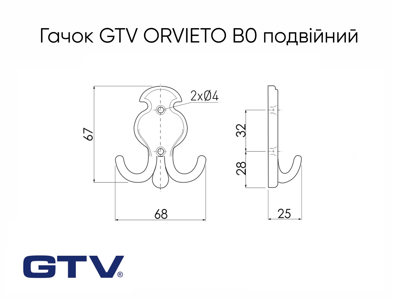 Мебельный крючок GTV ORVIETO B0 двойной, античная латунь