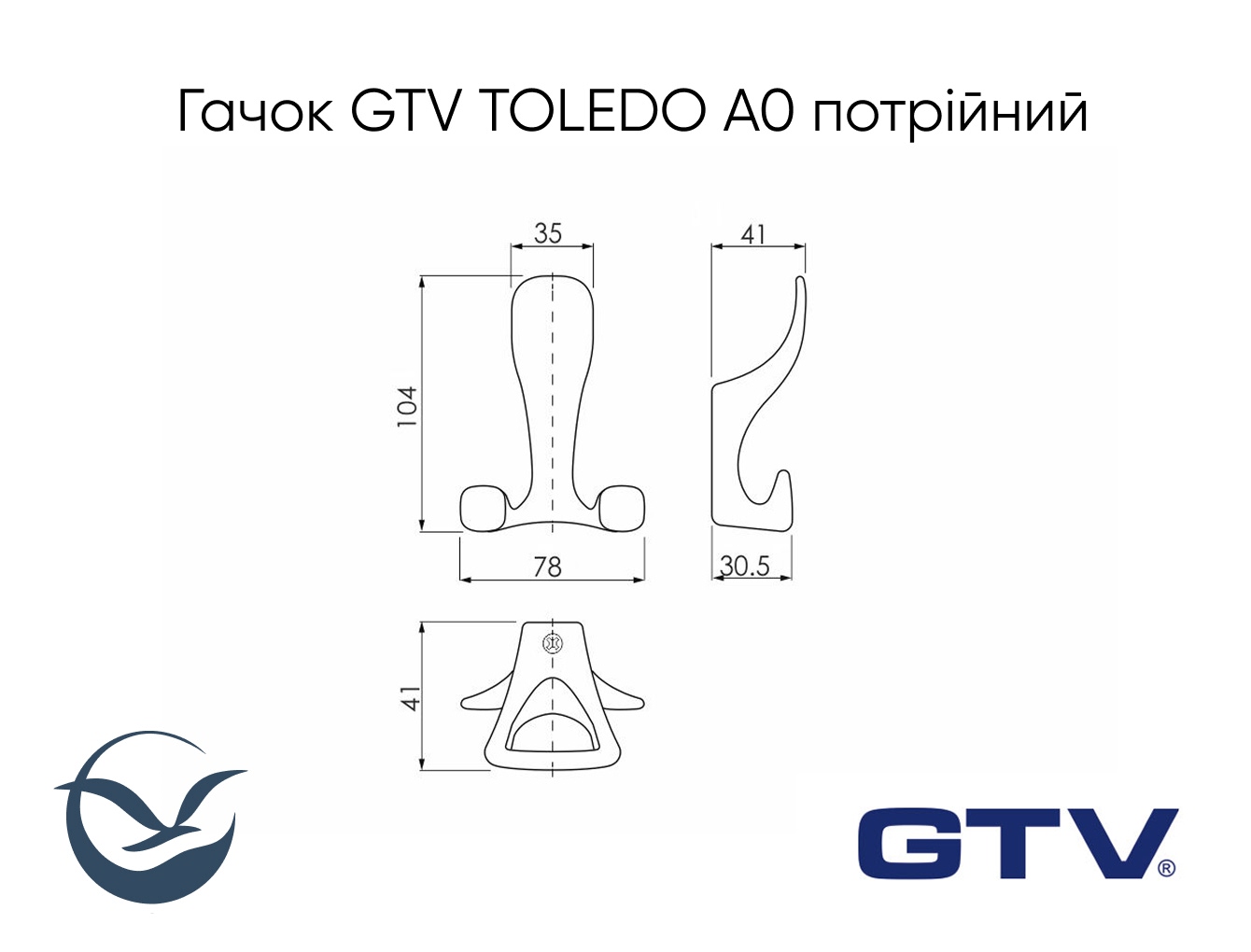 Мебельный крючок GTV TOLEDO A0 тройной, инокс