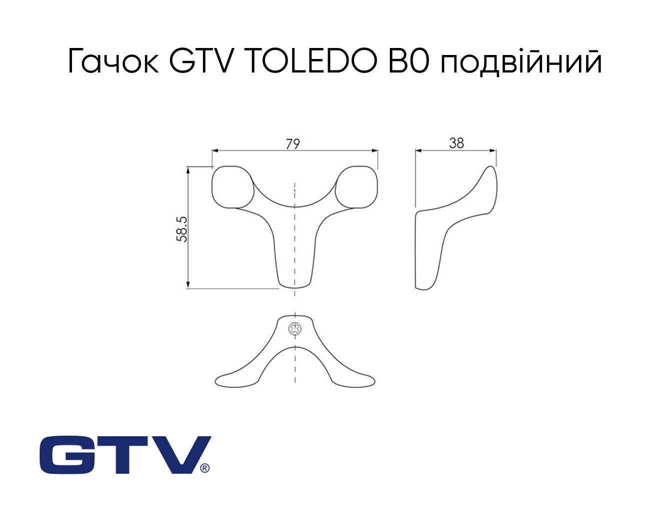 Мебельный крючок GTV TOLEDO B0 двойной, черный матовый