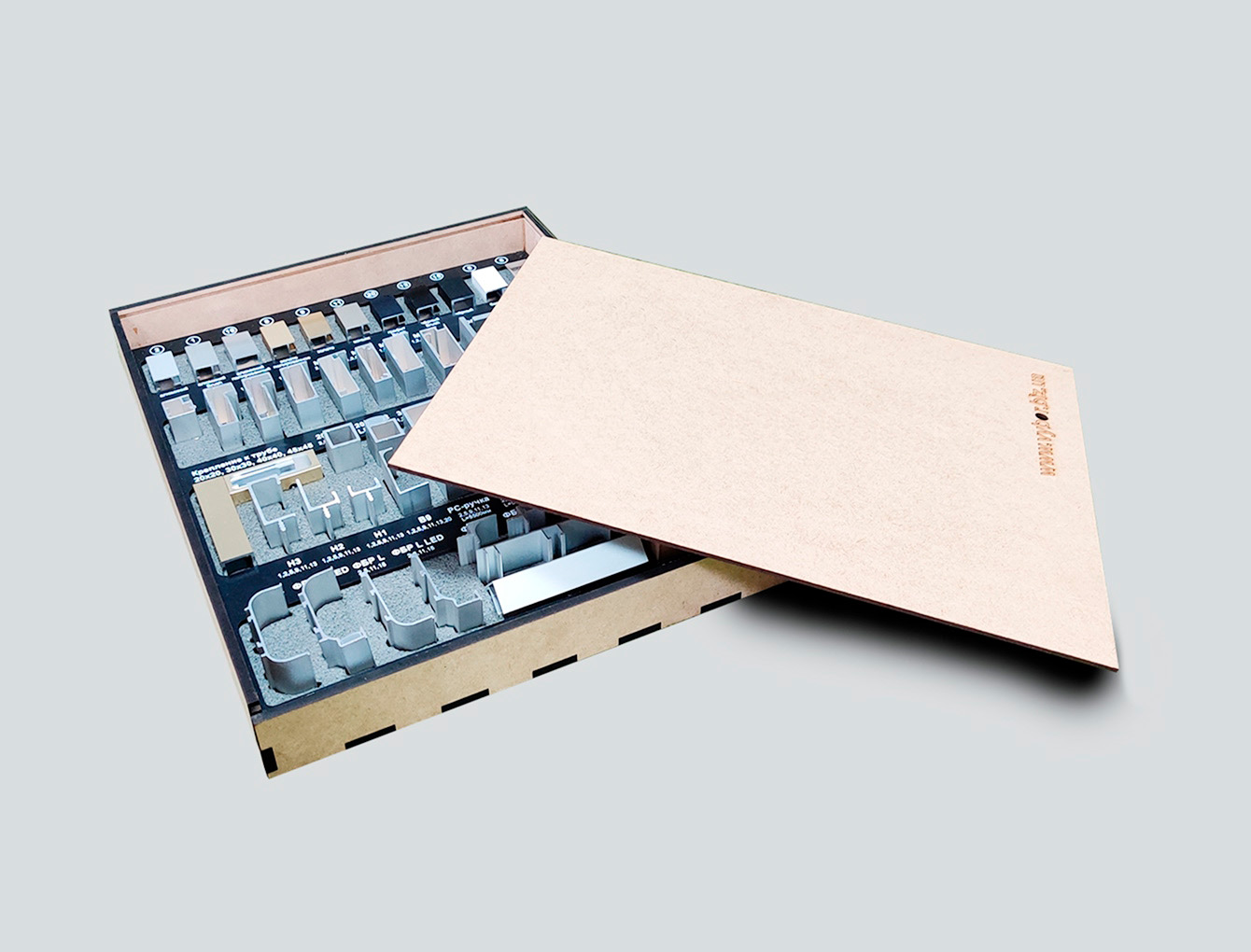 Представляем Вашему вниманию коробку с образцами профилей производства ПКФ "Выбор". Каждый образец можно вынуть из ячейки, примерить, приложить и правильно спроектировать мебель.