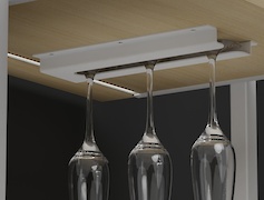 Бокальница позволяет повесить винные бокалы вверх ногами, за их ножку. Она крепится к полке или дну модуля с помощью саморезов. Одно из главных преимуществ такого держателя - экономия места. Бокалы находятся в держателе, что освобождает ценное пространство на полках и столах. Кроме того, бокалы всегда остаются под рукой. Вы можете легко достать их, когда вам нужно налить вино или подавать напитки.
