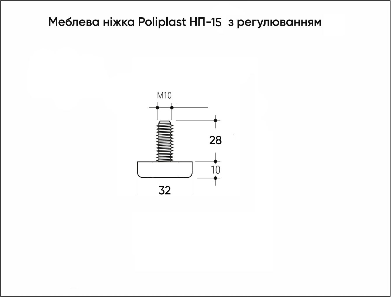 Мебельная ножка Poliplast НП-15 М10 с регулировкой, черный