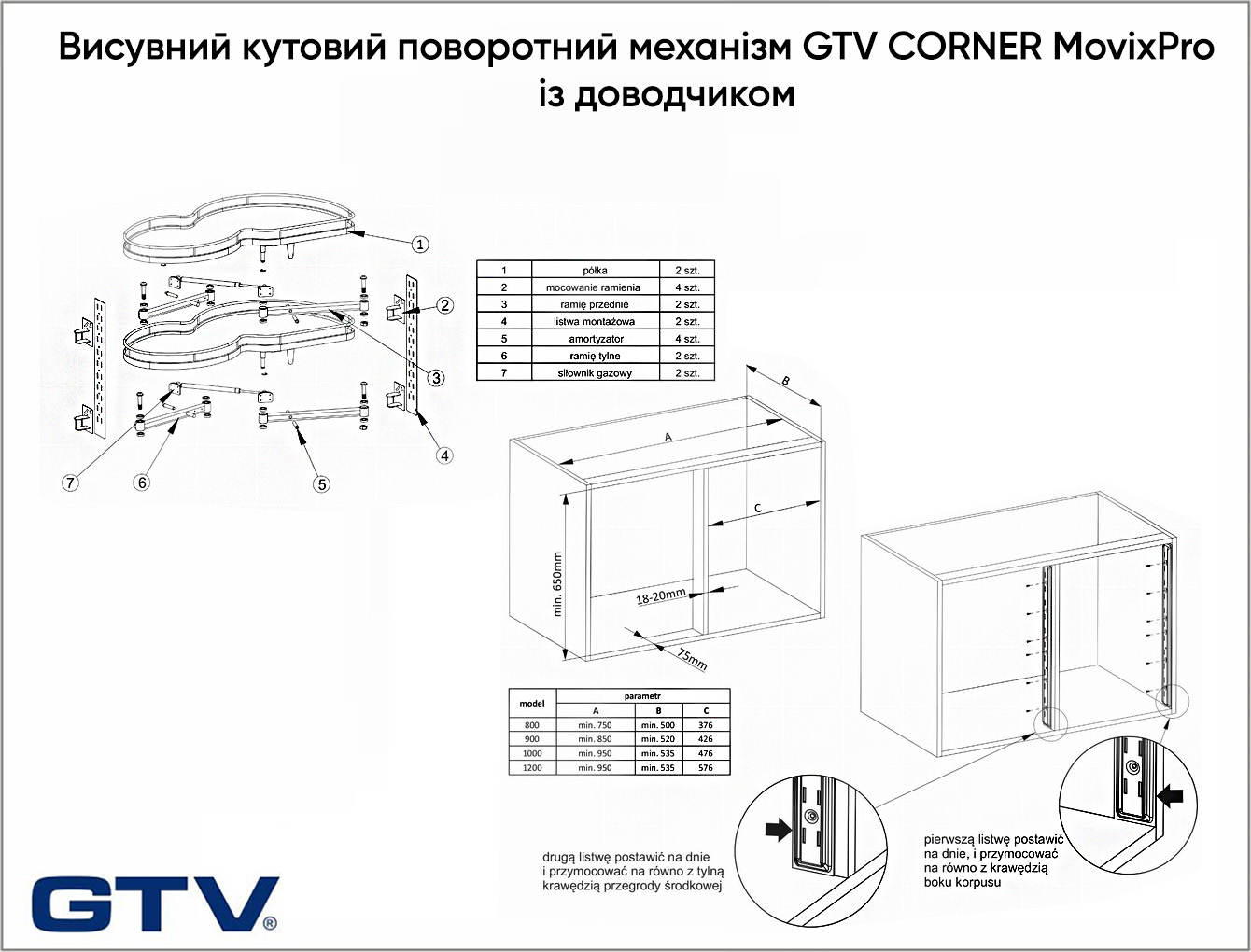Выдвижной угловой поворотный механизм GTV CORNER MovixPro с доводчиком в модуль 900мм, правый антрацит