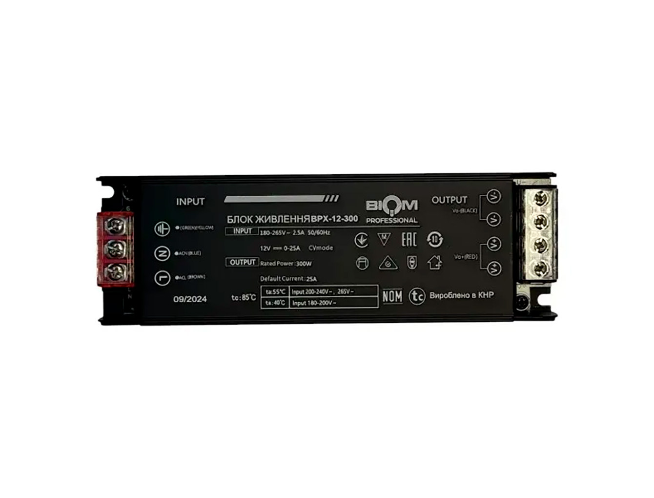 Блок питания BIOM Professional 12V 300W BPX-300 25А Напряжение: DC 12 V Мощность: 300W Ток на выходе: 25 A Рабочее напряжение: AC 180-265 V Охлаждение: ПАССИВНОЕ Класс защиты: IP20 Размеры: 196x60x29мм