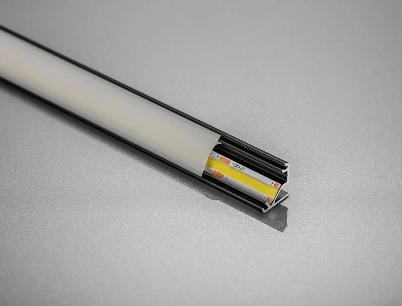 Алюминиевый профиль GLAX GTV предназначен для углового накладного монтажа LED-ленты. Благодаря своей форме он позволяет устанавливать подсветку под углом 45°, что обеспечивает эффективное распределение света и создаёт стильный современный эффект в мебели и интерьере. Чёрный матовый цвет придаёт конструкции элегантность и подчёркивает современный дизайн.