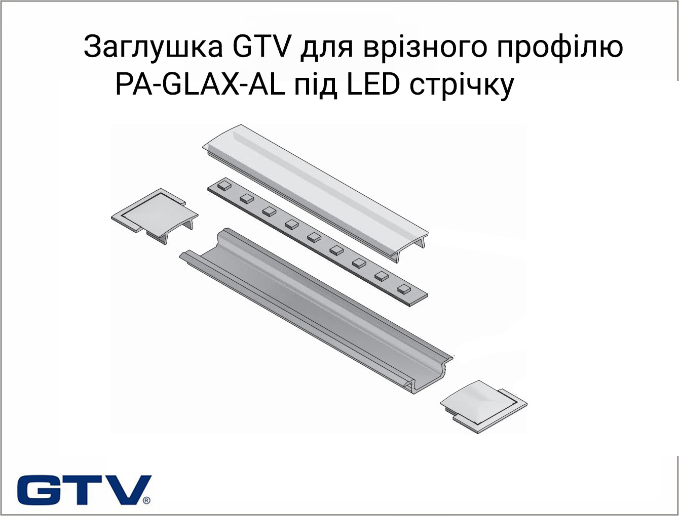 Заглушка GTV для врезного профиля PA-GLAX-AL под LED ленту, черный