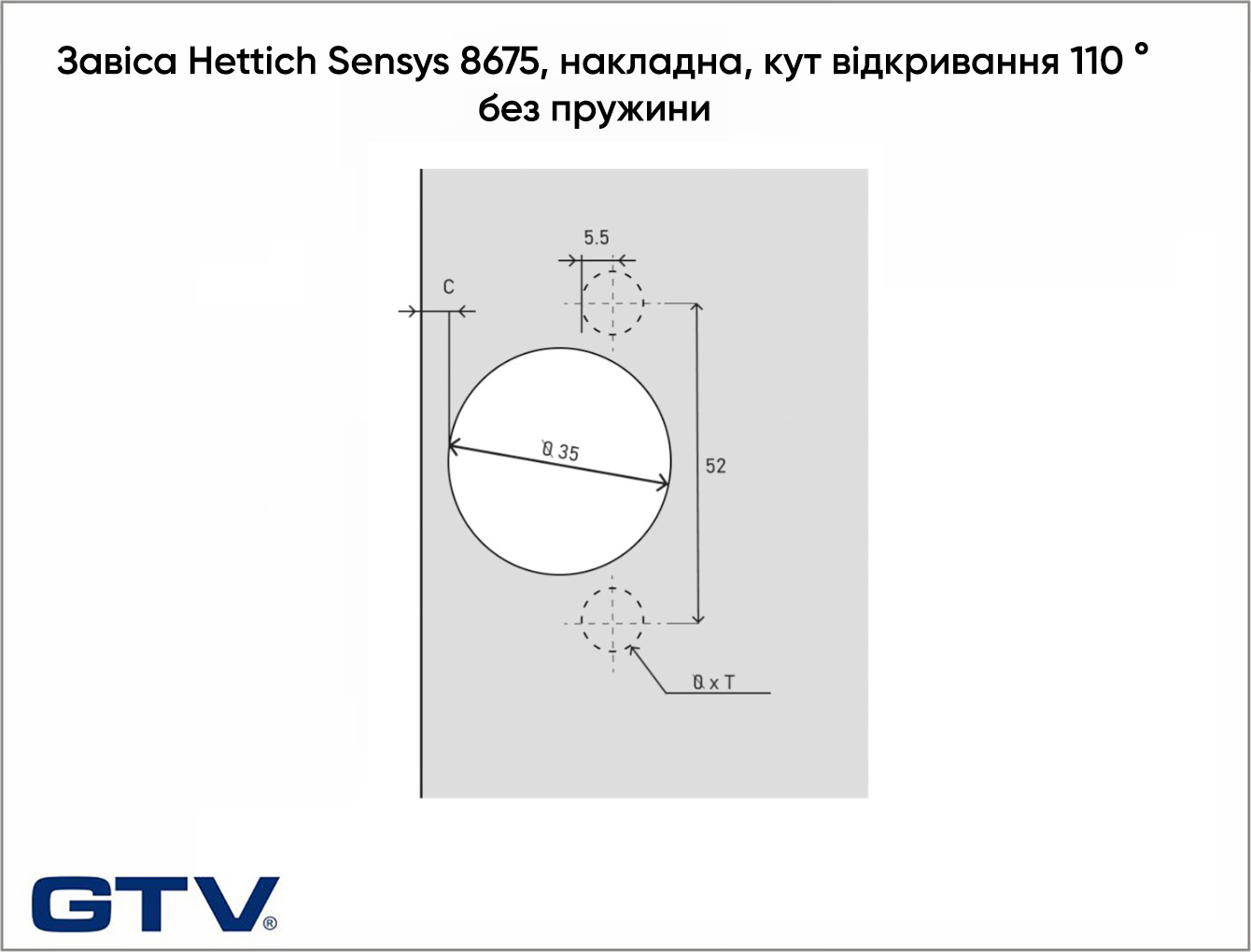 Петля Hettich Sensys 8675, накладная, угол открытия 110 °, без пружины, черный обсидиан