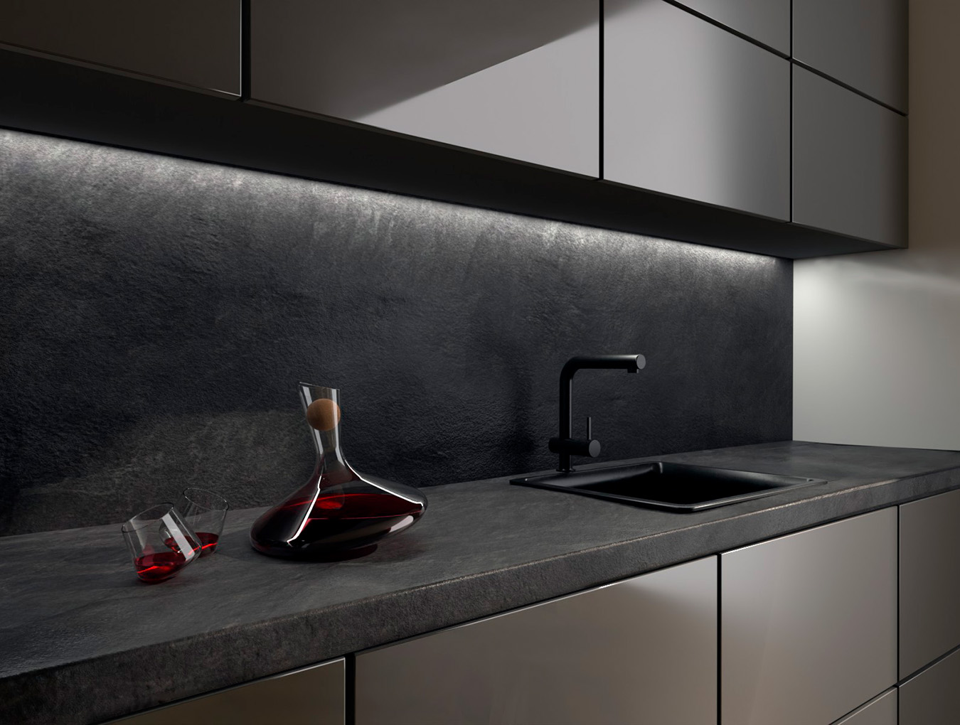 Среди камней сланец сочетает в себе элегантность и шероховатую природность и может стать качественной альтернативой бетону. F235 Сланец Скиваро демонстрирует однородный черный цвет и светоотражающий эффект материала, который к тому же ощущается шершавым и оригинальным благодаря поверхности ST76 Минерал шероховатый матовый. Благодаря XL повторению уменьшается количество повторов в рисунке декора, что делает имитацию еще более естественным, особенно на больших поверхностях.