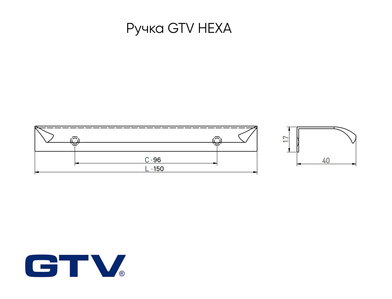 Мебельная ручка торцевая GTV HEXA L-150 мм, алюминий (UA-HEXA-96-05)