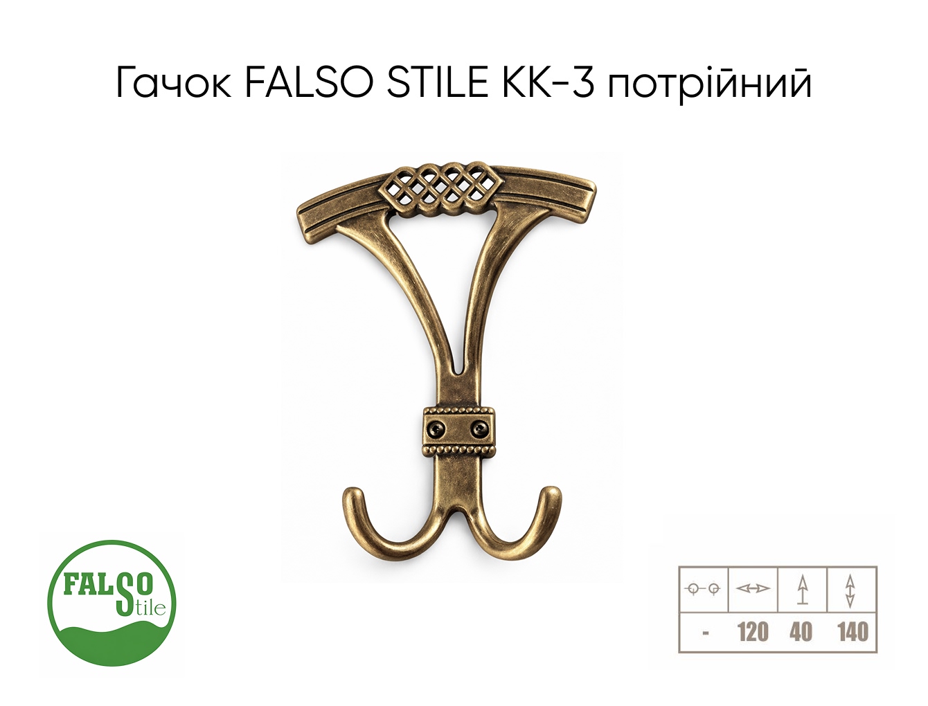 Меблевий гачок Falso Stile KK-3 потрійний - старе золото