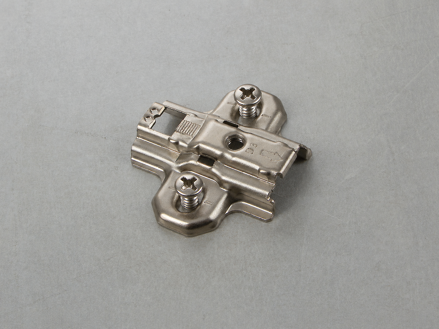 Хрестоподібна монтажна планка Hettich Intermat під прикручування, з єврогвинтами h = 3 мм нікель Відстань між отворами 32 мм; З попередньо встановленими єврогвинтами для отворів ø 5 х 12 мм. Довгасті отвори для регулювання висоти ± 2 мм