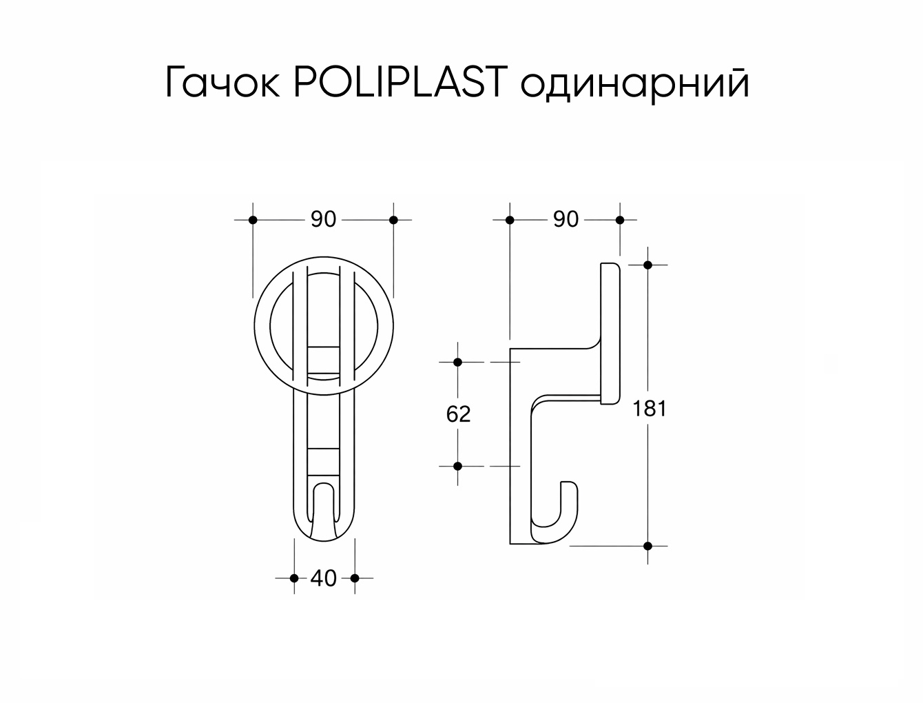 Меблевий гачок Poliplast одинарний - прозорий білий
