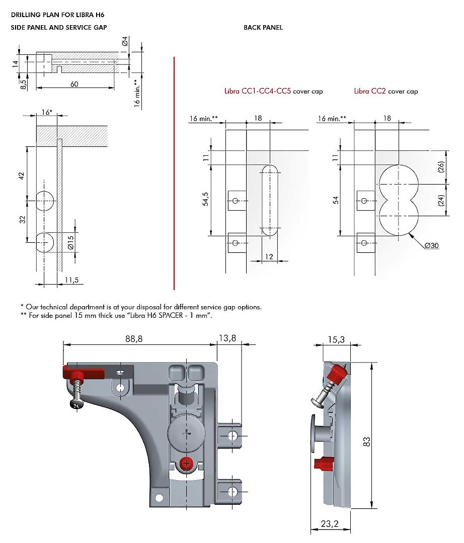 Підвіс меблевий з регулюванням Italiana Ferramenta Libra H6 для верхнього і нижнього модуля лівий