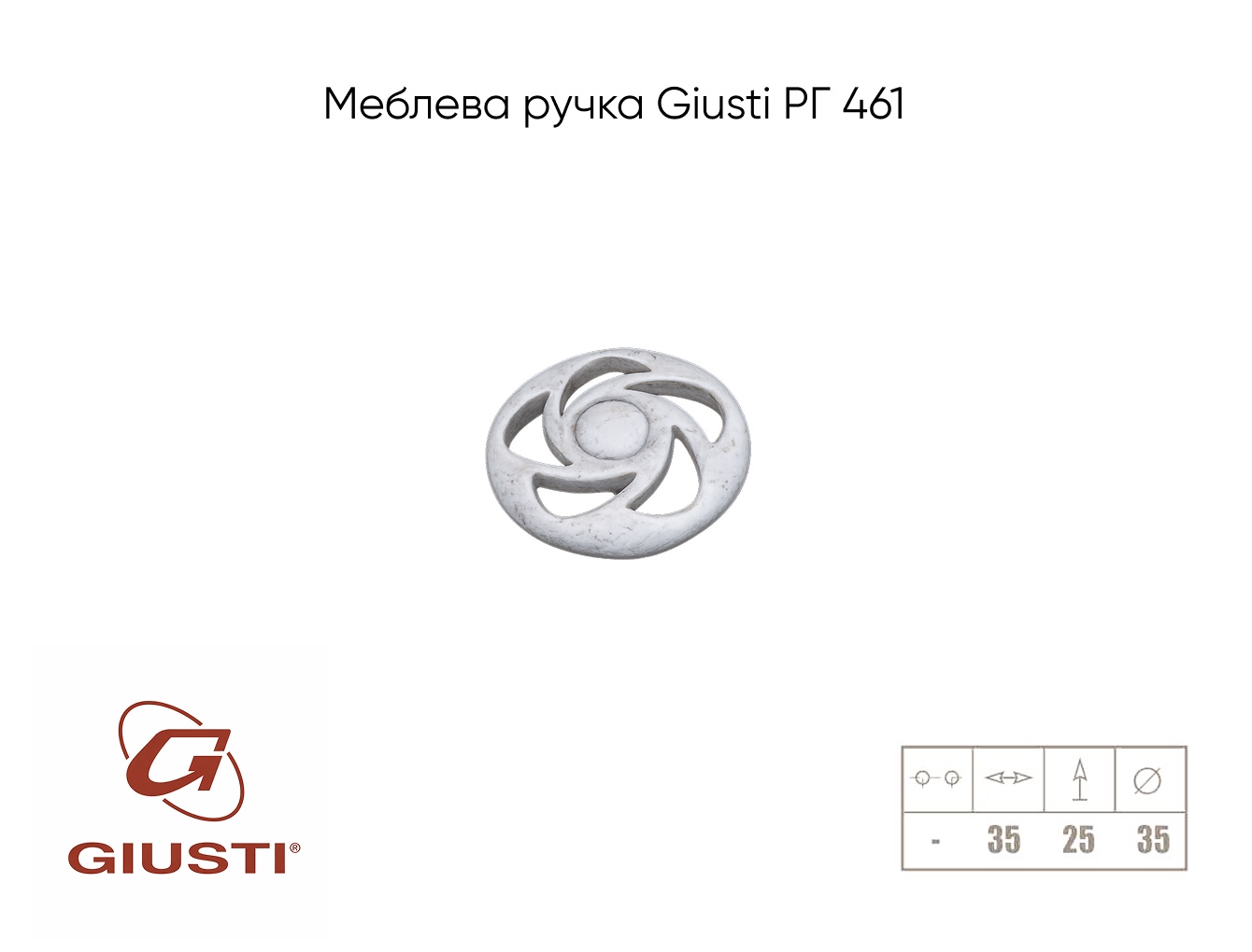 Відстань між отворами, мм: 0Італійська компанія Giusti є провідним виробником меблевих ручок.