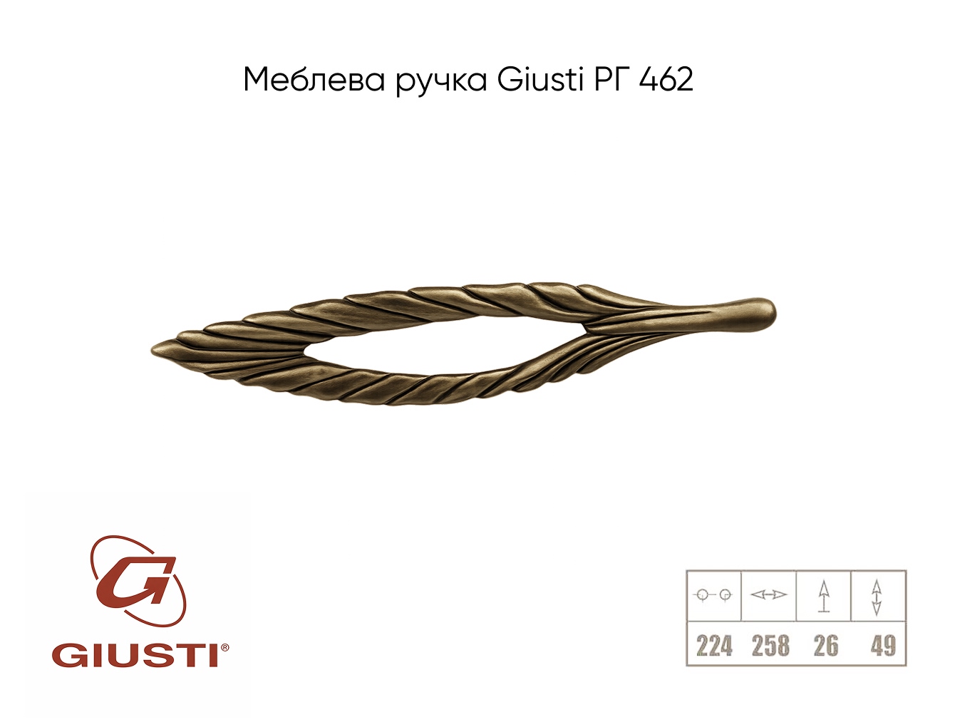 Відстань між отворами, мм: 224Італійська компанія Giusti є провідним виробником меблевих ручок.