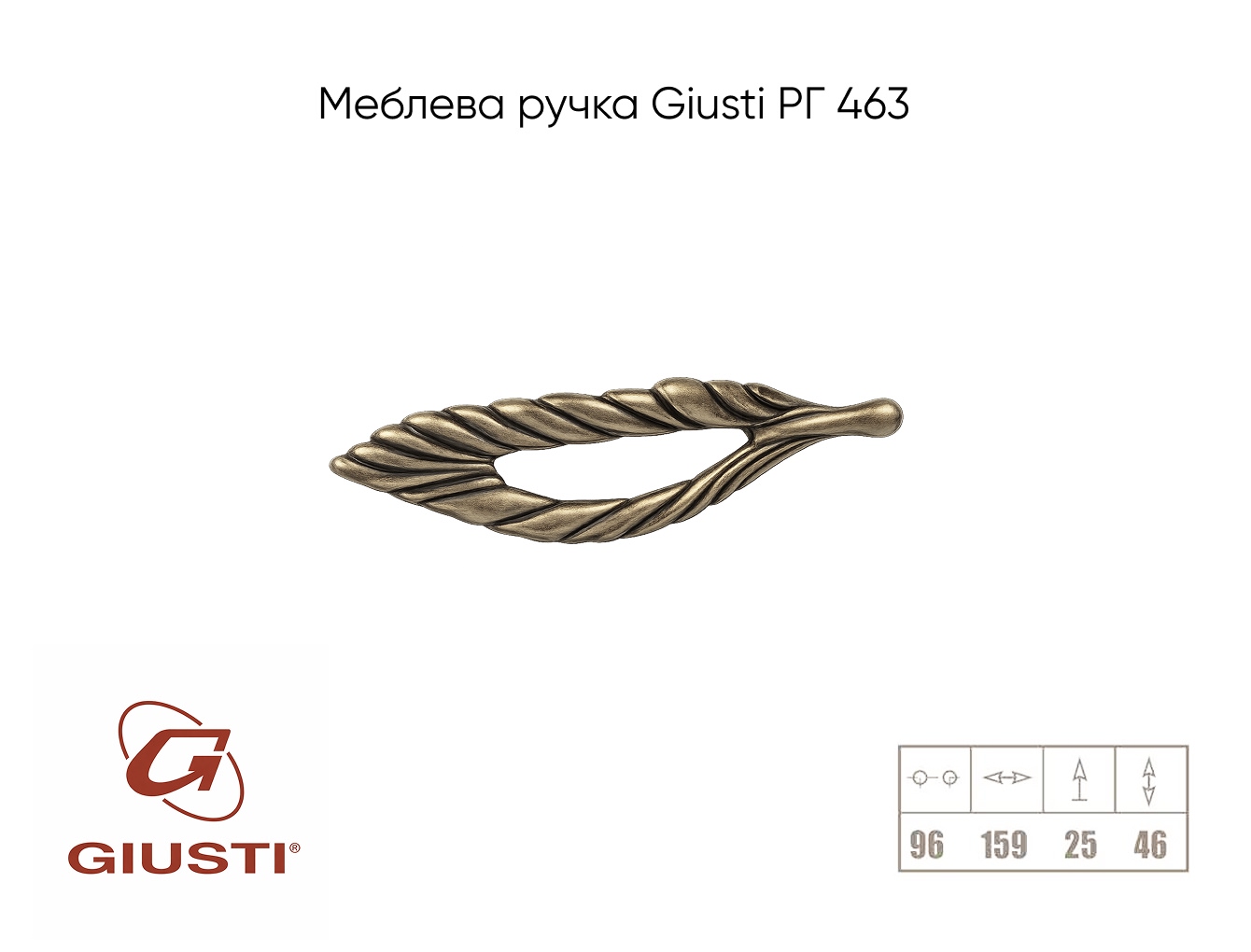 Відстань між отворами, мм: 96Італійська компанія Giusti є провідним виробником меблевих ручок.