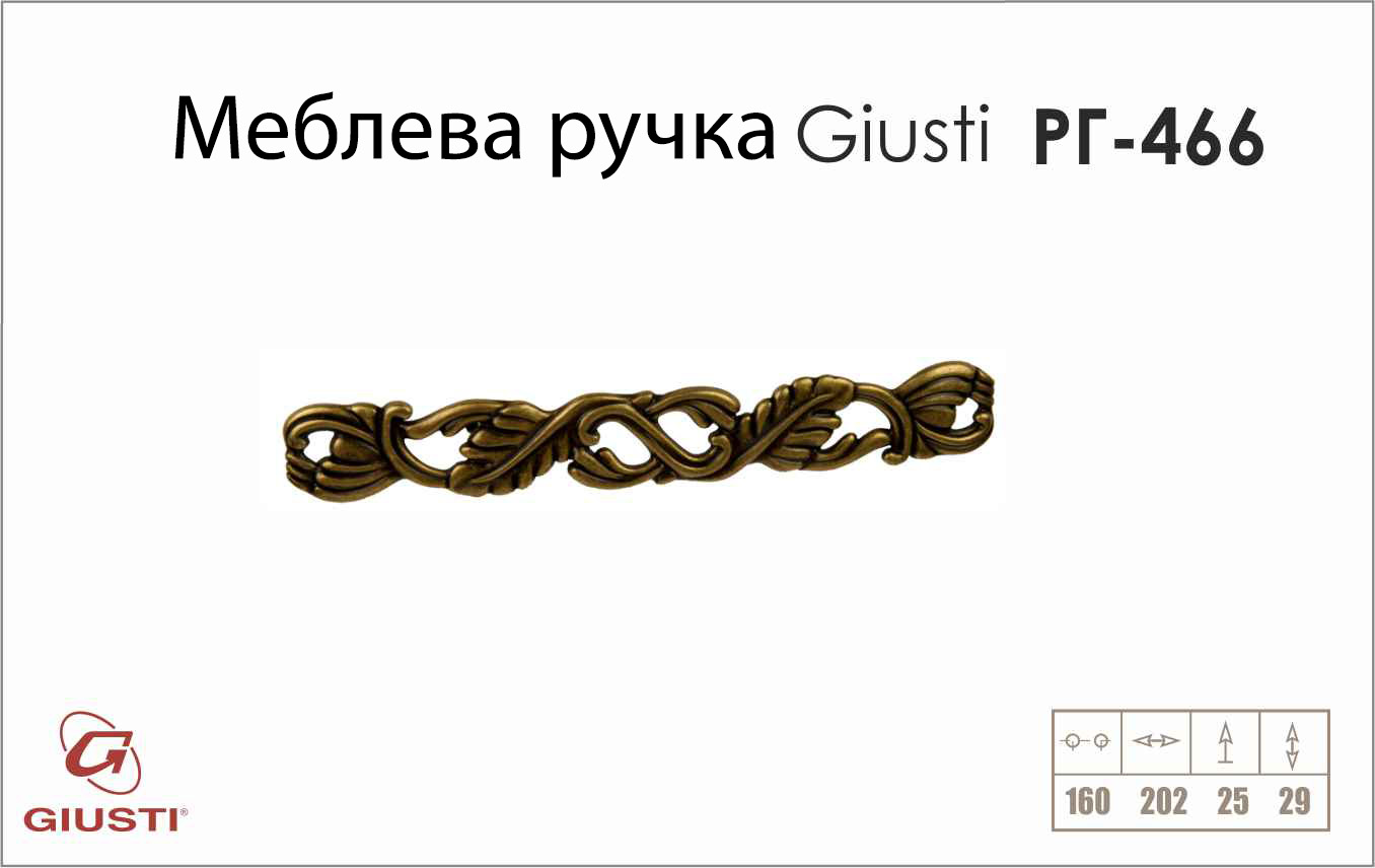 Відстань між отворами, мм: 160Італійська компанія Giusti є провідним виробником меблевих ручок.