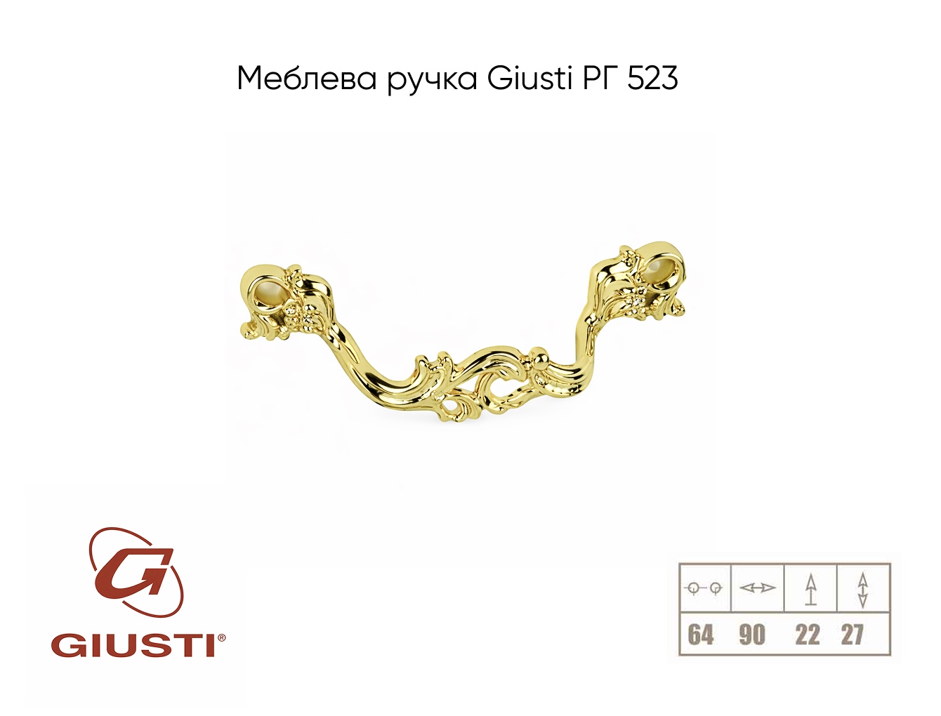 Меблева ручка Giusti РГ 523 WMN631.064.00GP золото глянсове