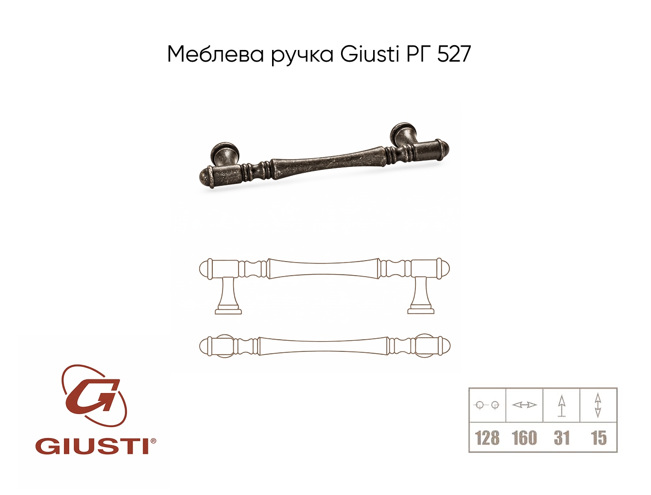 Відстань між отворами, мм: 128Італійська компанія Giusti є провідним виробником меблевих ручок.