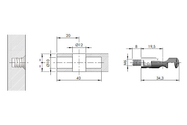 Дюбель М6 для гвинтової стяжки TARGET J12 Italiana Ferramenta