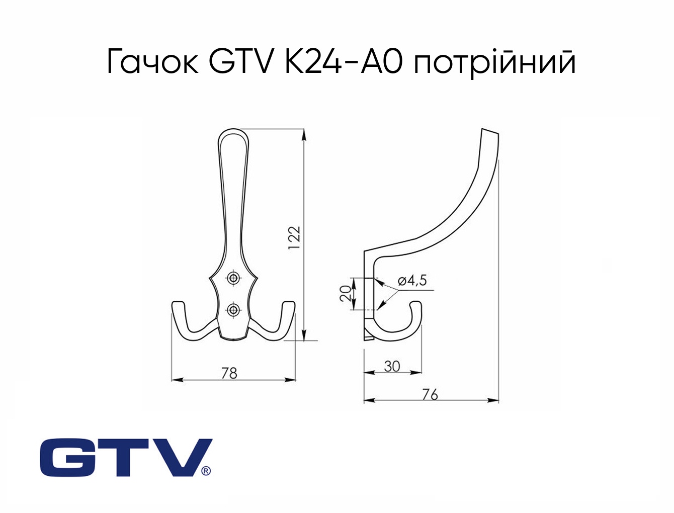 Меблевий гачок GTV K24-А0 потрійний, алюміній