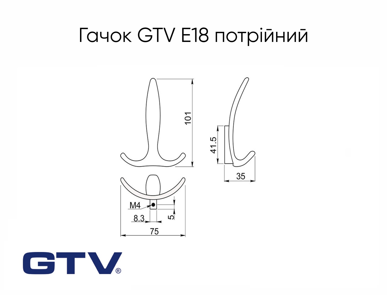 Меблевий гачок GTV Е18 потрійний, алюміній
