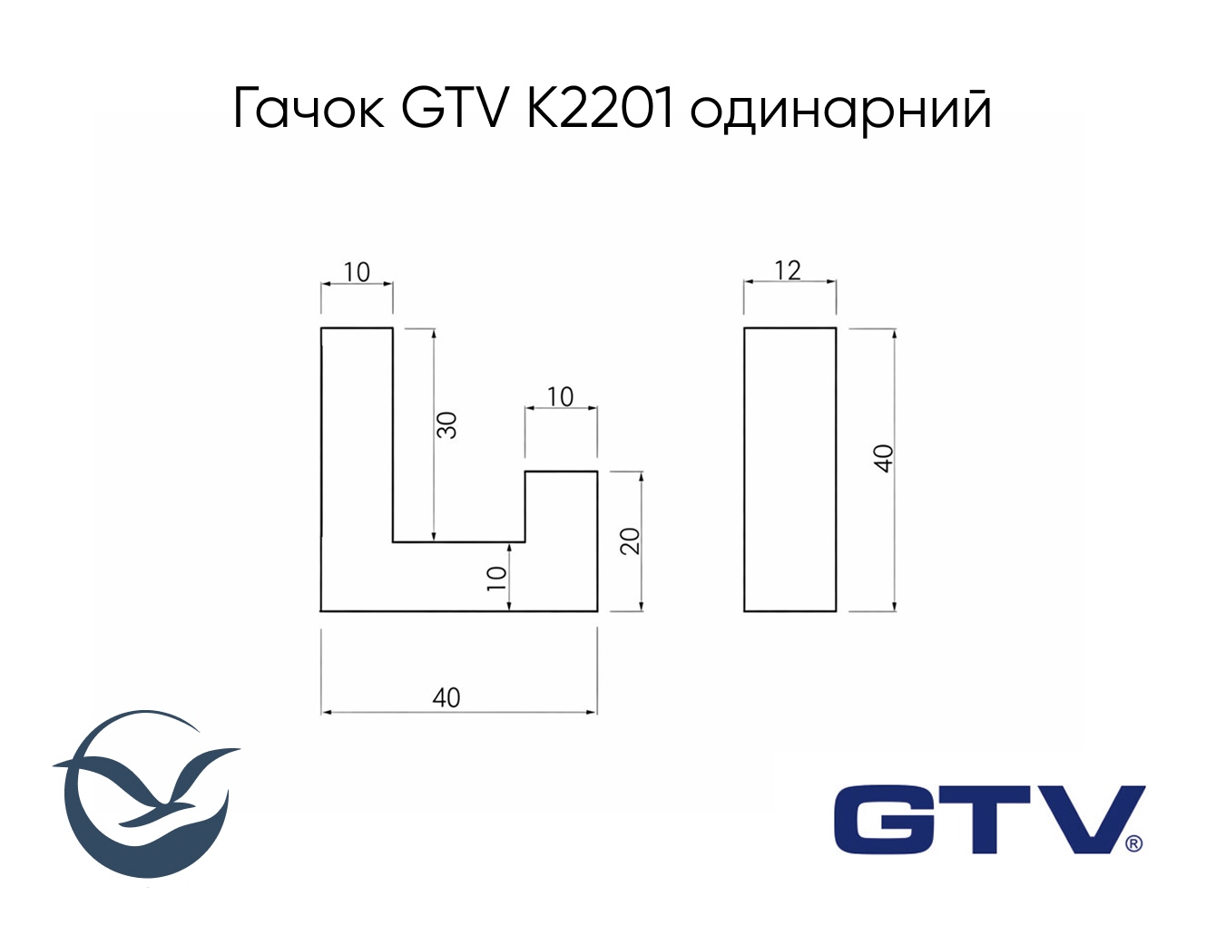 Меблевий гачок GTV K2201 одинарний, інокс