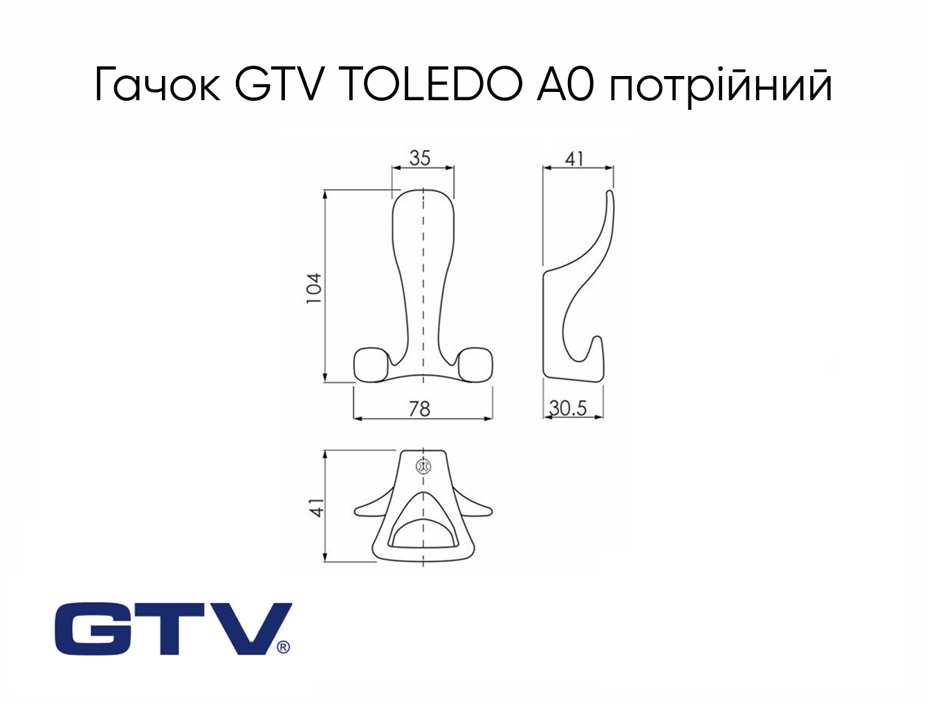 Меблевий гачок GTV TOLEDO A0 потрійний, інокс