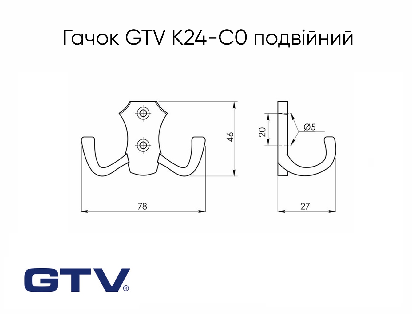 Меблевий гачок GTV K24-B0 подвійний, сатин