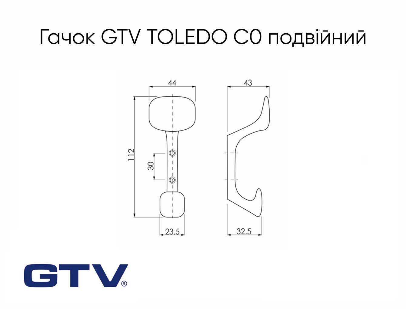 Меблевий гачок GTV TOLEDO C0 подвійний, алюміній