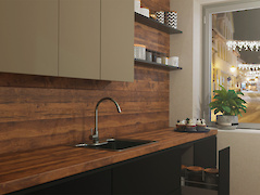 Чіткі дошки, природні тріщини й сучки декору Дуб Хантон забезпечують дуже рустикальний, автентичний вигляд. Підходить для захоплюючих акцентів як у дизайні меблів, так і в декорі стільниць. Темний тон надає певної вишуканості рустикальному дощаному декору. Текстура ST10 Шорсткуваті глибокі пори забезпечує автентичний характер. З повтором великого розміру декор виглядає дуже природним через зменшену кількість повторів тріщин і сучків.