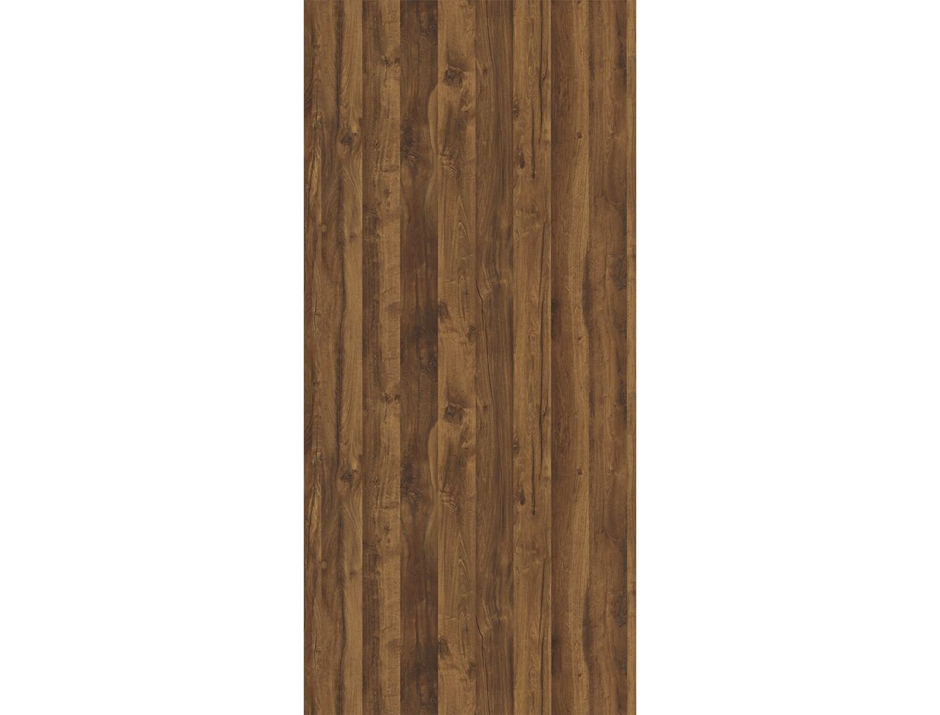 Напрямок малюнка декору: Вертикальні пориЧіткі дошки, природні тріщини й сучки декору Дуб Хантон забезпечують дуже рустикальний, автентичний вигляд. Підходить для захоплюючих акцентів як у дизайні меблів, так і в декорі стільниць. Темний тон надає певної вишуканості рустикальному дощаному декору. Текстура ST10 Шорсткуваті глибокі пори забезпечує автентичний характер. З повтором великого розміру декор виглядає дуже природним через зменшену кількість повторів тріщин і сучків.