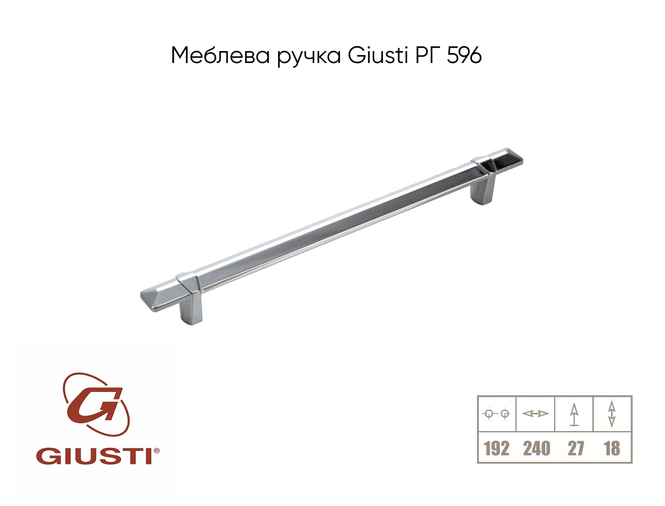 Відстань між отворами, мм: 192Італійська компанія Giusti є провідним виробником меблевих ручок. Авторські колекції виконані в вишуканістю італьянсокм стилі зможуть зрадити витончений смак Вашого інтер'єру.