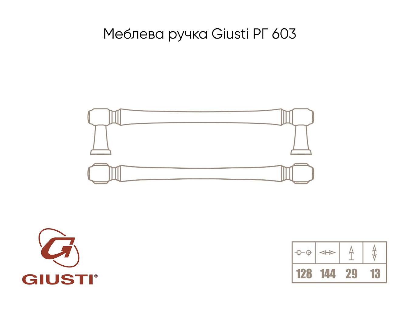 Відстань між отворами, мм: 128Італійська компанія Giusti є провідним виробником меблевих ручок.