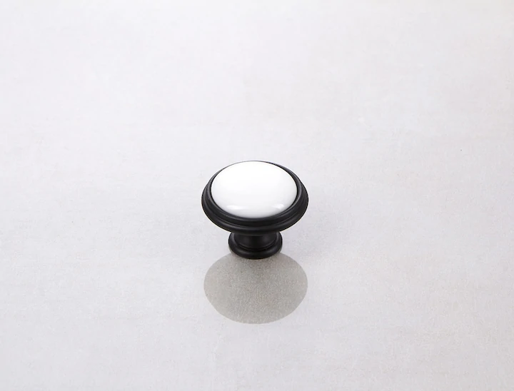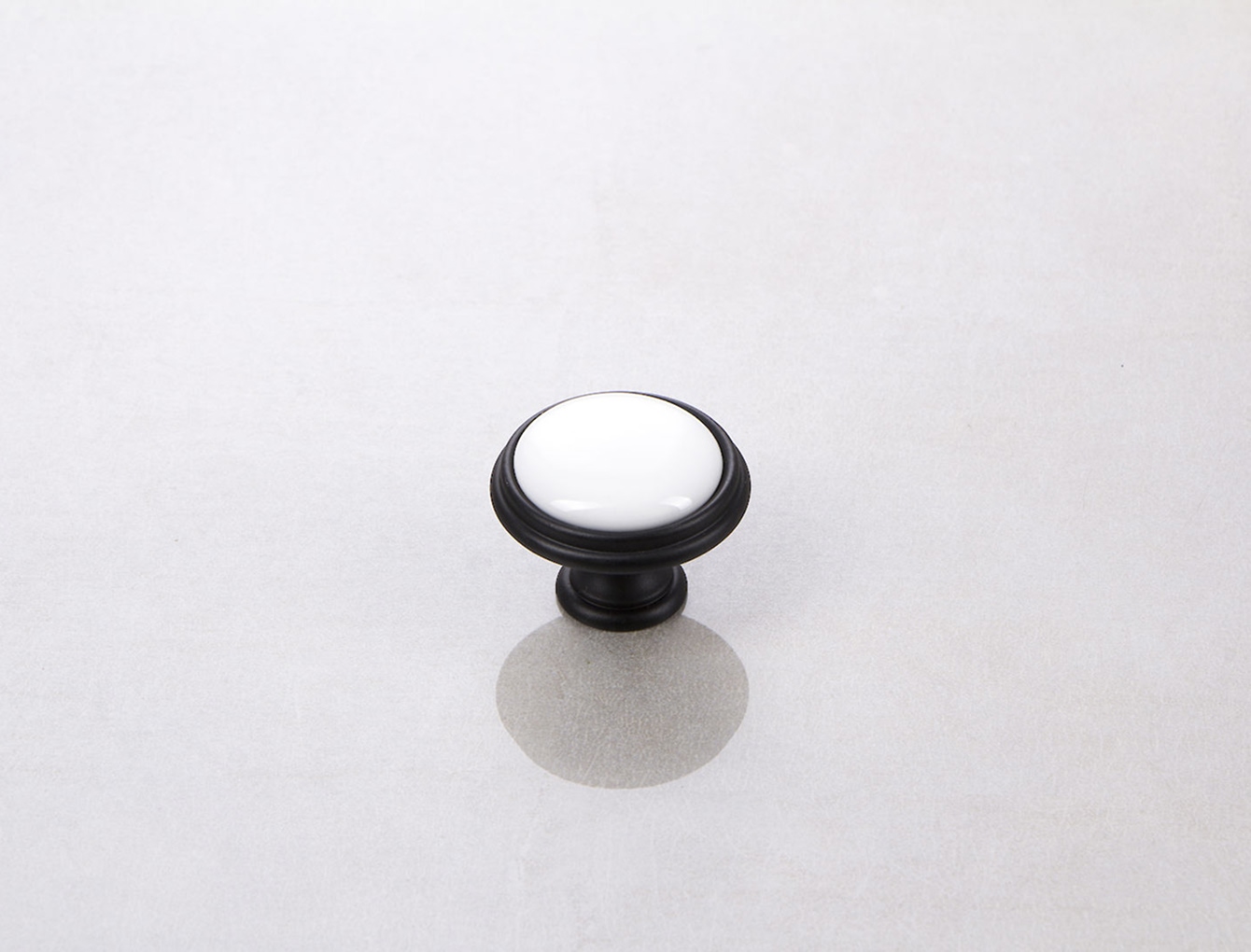 Меблева ручка-кнопка Giusti РГ 621 P77.00.00.N4G чорний матовий з білою керамікою