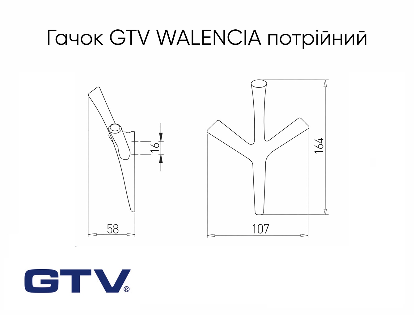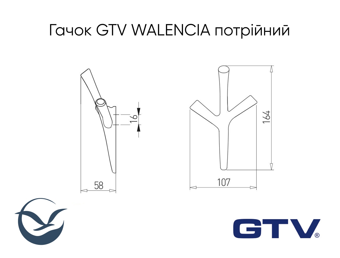 Меблевий гачок GTV WALENCIA потрійний, чорний
