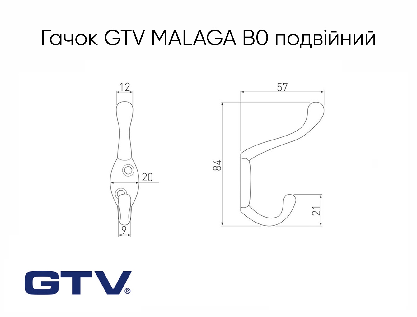 Меблевий гачок GTV MALAGA B0 подвійний, сатин