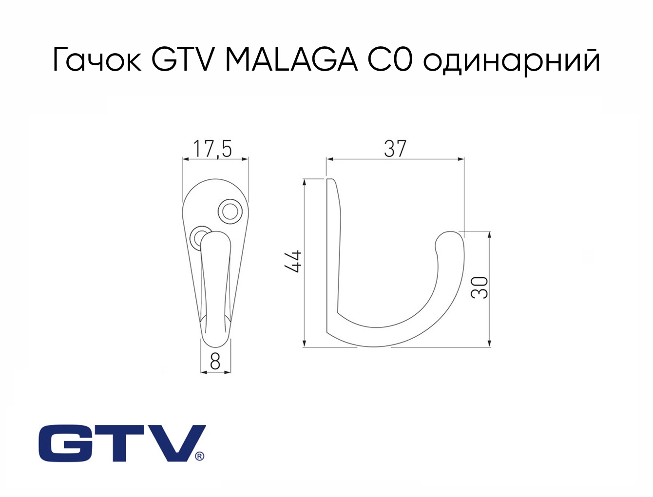 Меблевий гачок GTV MALAGA C0 одинарний, хром
