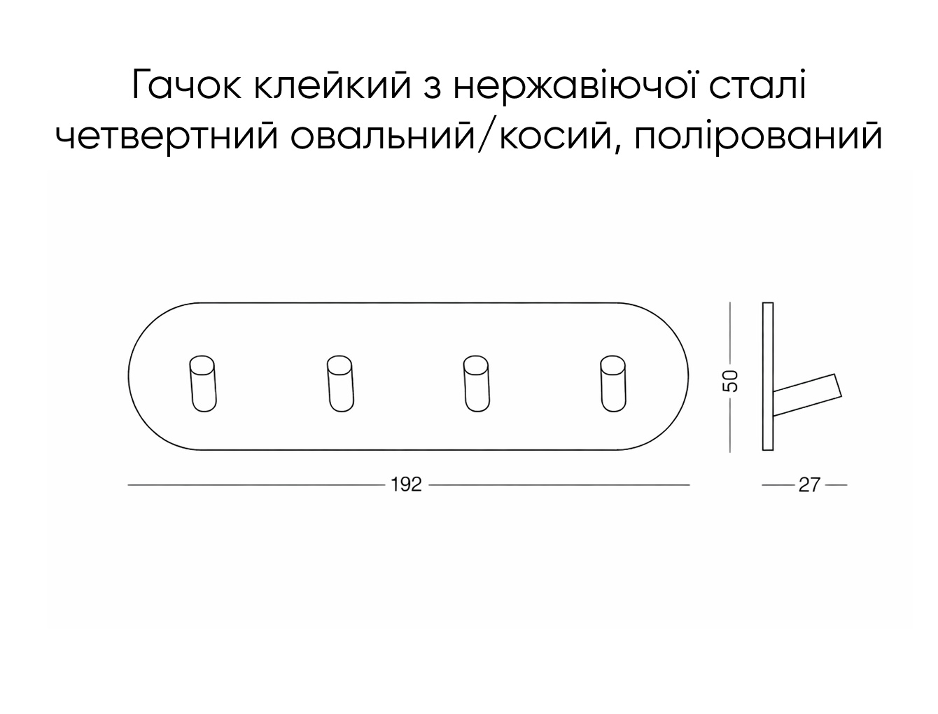 Гачок клейкий з нержавіючої сталі четвертний овальний/косий, матовий