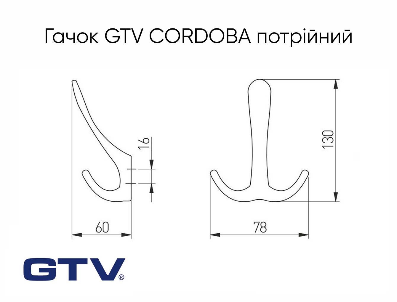 Меблевий гачок GTV CORDOBA потрійний, інокс