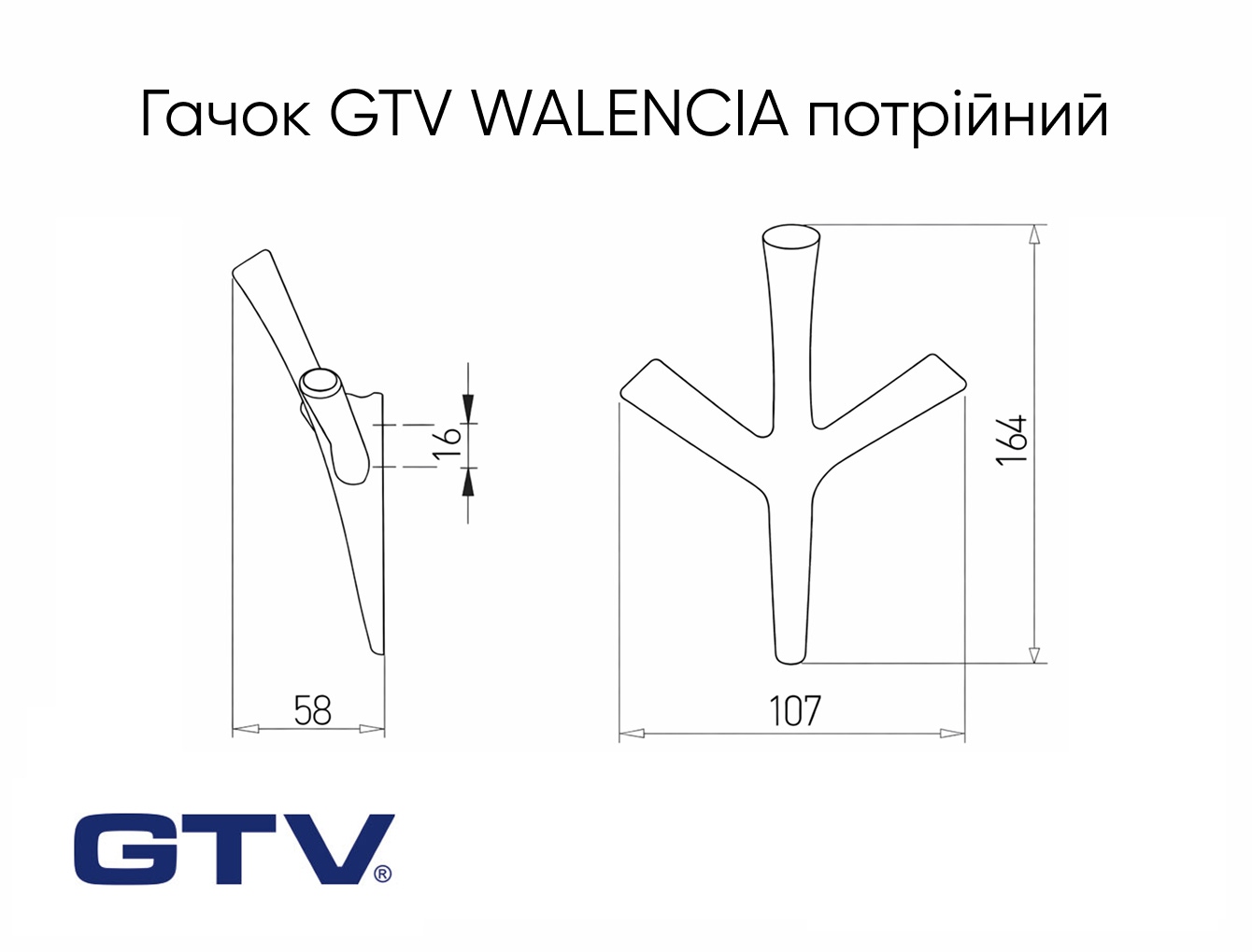 Меблевий гачок GTV WALENCIA потрійний, інокс