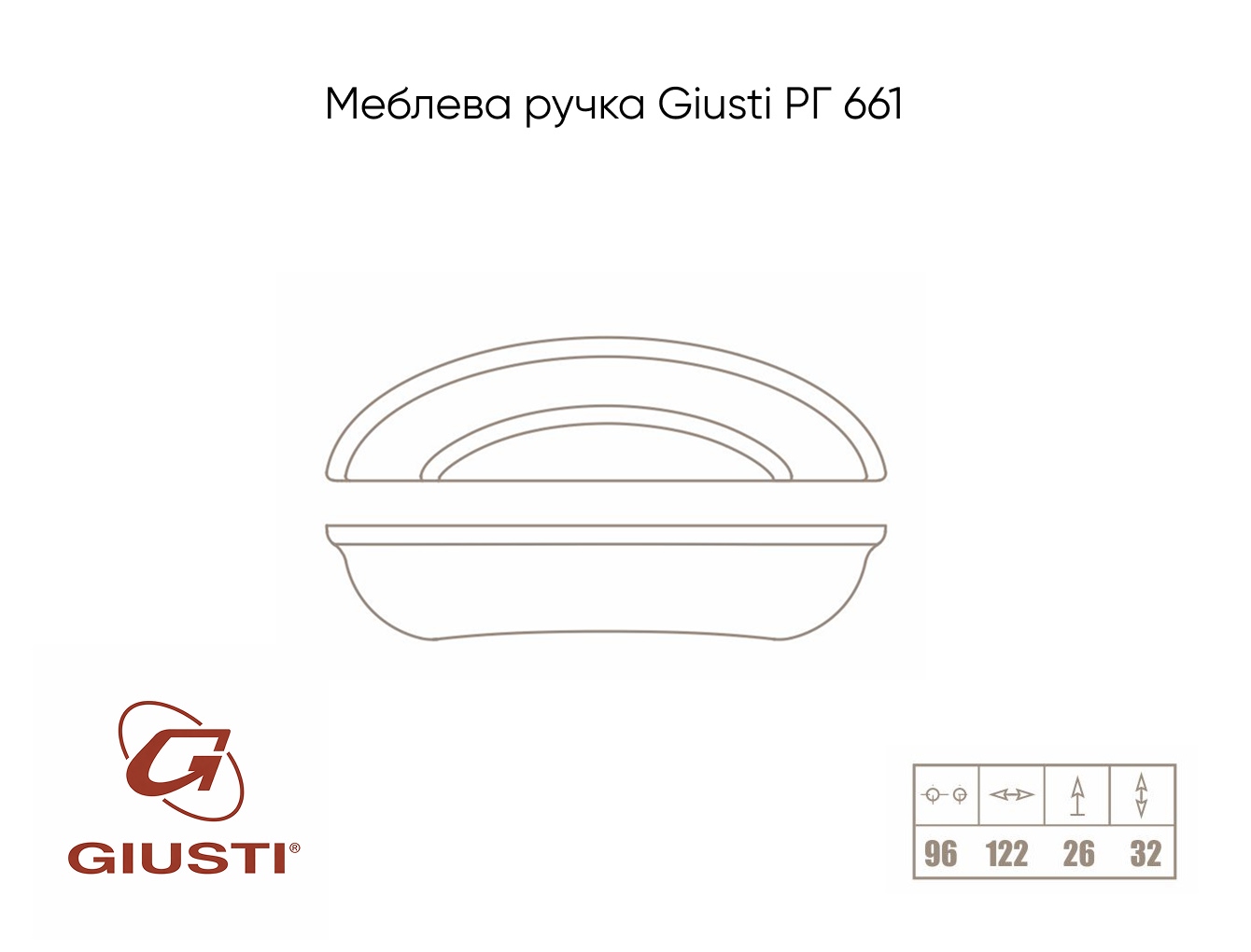 Відстань між отворами, мм: 96Італійська компанія Giusti є провідним виробником меблевих ручок.