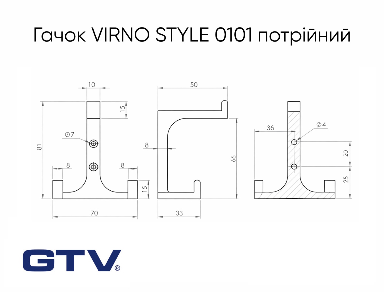 Вид гачка: потрійний (триріжковий)Модель VIRNO STYLE 0101 своєю функціональністю та технологічністю чудово доповнить інтер'єри в стилях хай-тек, техно і навіть конструктивізм. Легкий прямолінійний дизайн гачка VIRNO STYLE 0101 ідеально впишеться в інтер'єр кухні, передпокою або ванної кімнати.