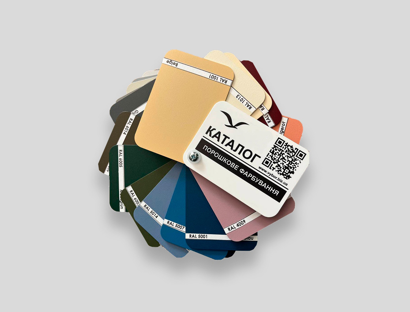Представляємо каталог порошкового фарбування ВИБІР. Це ідеальний помічник у виборі відповідного відтінку вашому інтер'єру. Різноманітність кольорів дозволить вам легко підібрати ідеальне поєднання для вашого проекту. Від класичних, нейтральних до сучасних і яскравих, перламутрових, трендових кольорів — тут є все, що вам потрібно для втілення ваших ідей у життя. Віяло зручне у використанні і легке у перенесенні.