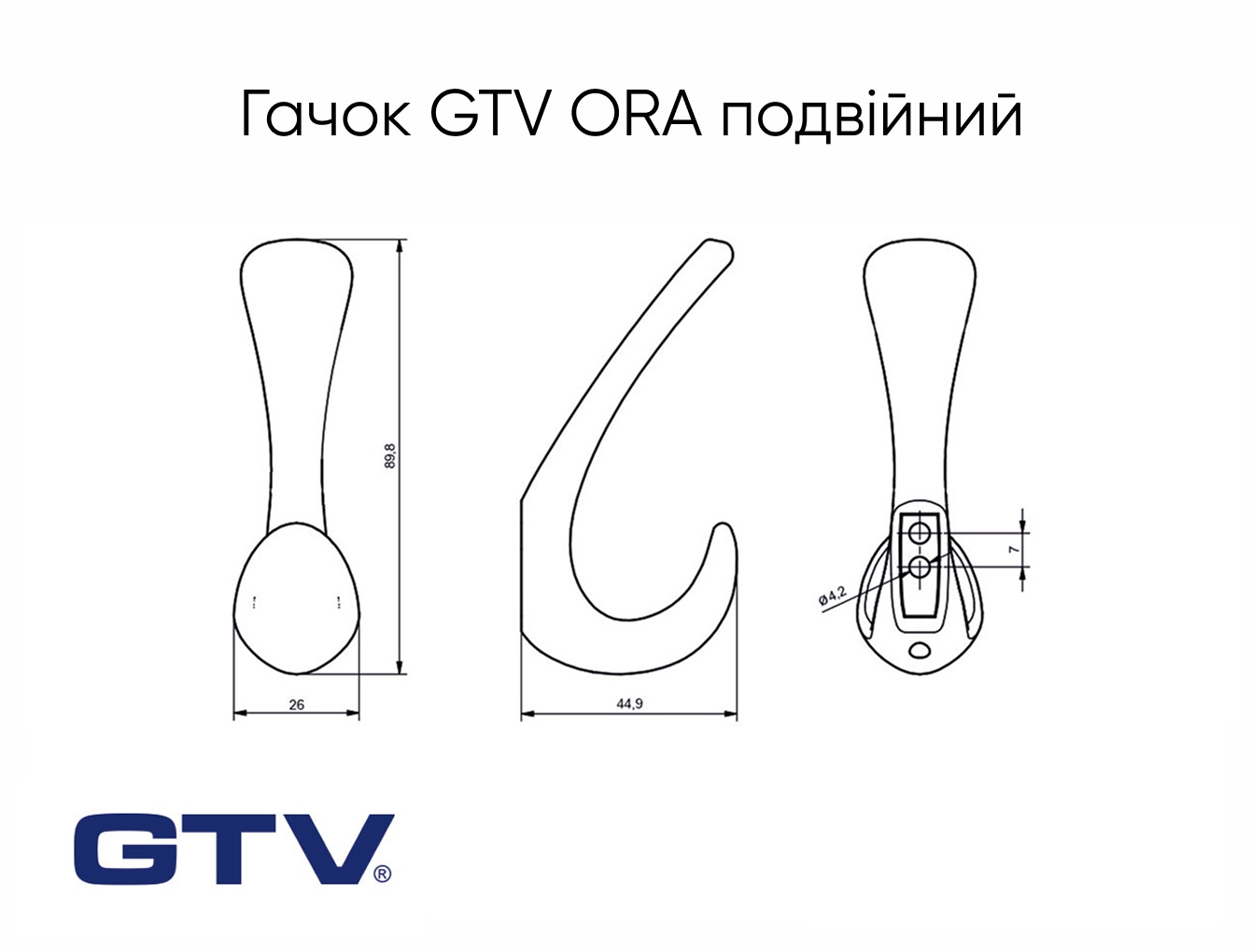 Меблевий гачок GTV ORA подвійний, золото матове